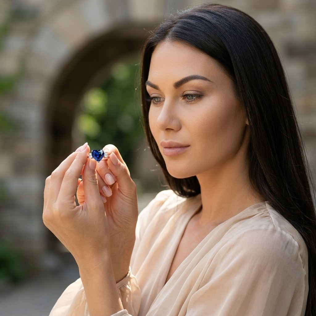 Naturliga safirer, noggrant utvalda för sin karaktär och djup.